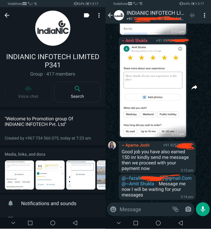 These groups are misleading: IndiaNIC has nothing to do with these WhatsApp groups or the claims of income through Google reviews.